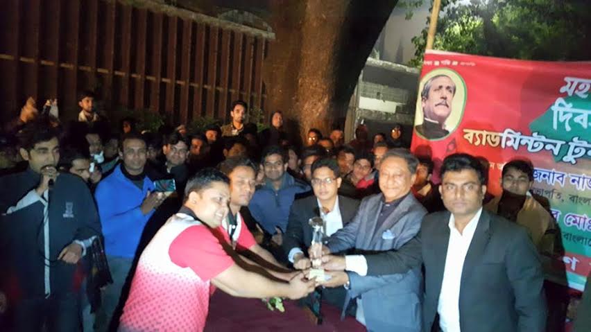 বাংলাদেশ ছাত্রলীগ আয়োজিত ‘বিজয় দিবস ব্যাডমিন্টন টুর্নামেন্ট-২০১৫’-এ চ্যাম্পিয়ান হয়েছে জাহাঙ্গীরনগর বিশ্ববিদ্যালয় শাখা ছাত্রলীগ। রোববার রাতে ঢাকা বিশ্ববিদ্যালয়ের হাকিম চত্বরে টুর্নামেন্টের ফাইনাল খেলা অনুষ্ঠিত হয়।