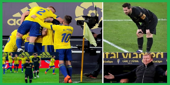 লিওনেল মেসির দল স্প্যানিশ জায়ান্ট বার্সেলোনাকেই হারিয়ে দিলো বাইরে ক্যাডিজ! বার্সার পরাজয়ের ব্যবধান ২-১ গোলে।