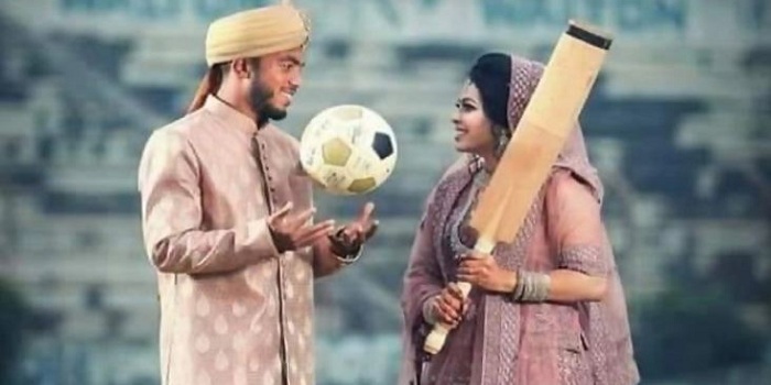 একজনের হাতে বল, অন্যজনের হাতে ব্যাট। বগুড়ার শহীদ চান্দু স্টেডিয়ামে বিয়ের সাজে তোলা সুফিলের হাতে বল এবং অর্থীর হাতে ব্যাটের ছবিই এখন ঘুরছে সামাজিক যোগাযোগ মাধ্যমে। নেটিজেনরা অভিনন্দনের বন্যায় ভাসিয়ে দিচ্ছেন ফুটবল-ক্রিকেটের এই জুটিকে।