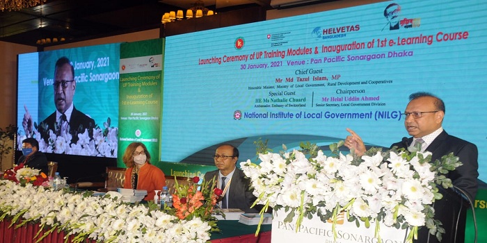 শনিবার (৩০জানুয়ারি) রাজধানীর একটি হোটেলে জাতীয় স্থানীয় সরকার ইনস্টিটিউট-এনআইএলজি আয়োজিত 'ইউনিয়ন পরিষদ-ইউপি ট্রেনিং মডিউলস এবং প্রথম ই-লার্নিং কোর্সের উদ্বোধনী অনুষ্ঠানে প্রধান অতিথির বক্তব্যে তিনি এসব কথা বলেন।