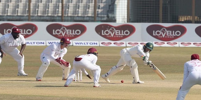 ষষ্ঠ উইকেটে অবিচ্ছিন্ন ৪৯ রানের জুটি গড়েন সাকিব-লিটন। সাকিব ৩৯ রানে আর লিটন ৩৪ রানে অপরাজিত ছিলেন। দুজনেই সেট ব্যাটসম্যান। উইন্ডিজ স্পিনারদের মুখস্ত করে ফেলেছেন।