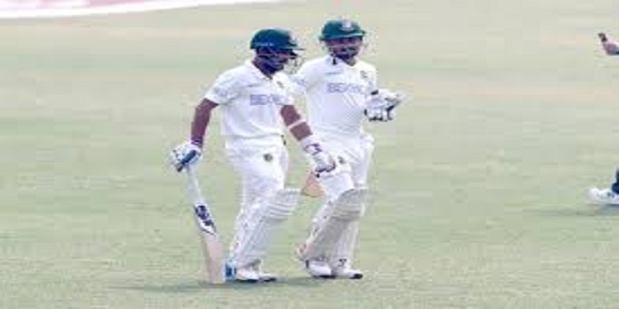 ক্যারিয়ারের সপ্তম হাফসেঞ্চুরি তুলে লিটন অপরাজিত আছেন ৬৬ রানে। মিরাজ পেয়েছেন টেস্ট ক্যারিয়ারের তৃতীয় ফিফটি। তিনি ৫৩ রান নিয়ে ব্যাট করছেন। তাদের ব্যাটেই ঢাকা টেস্টে এখন বড় কিছুর স্বপ্ন টাইগারদের।