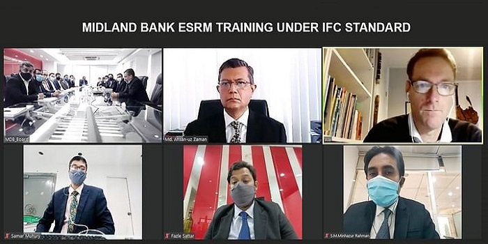 মিডল্যান্ড ব্যাংক লিমিটেড (এমডিবি) ডিজিটাল প্ল্যাটফর্মের মাধ্যমে ‘পরিবেশগত ও সামাজিক ঝুঁকি ব্যবস্থাপনা (ইএসআরএম) প্রশিক্ষণ’ শীর্ষক দুই দিনব্যাপী এক প্রশিক্ষণ অনুষ্ঠিত হয়।