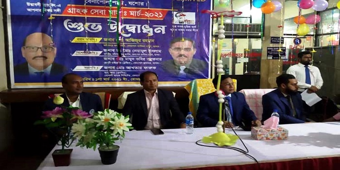 ‘দৃপ্ত শপথ মুজিব বর্ষে আমরা থাকব সবার শীর্ষে’ এই স্লোগানে সোমবার সকালে সোনালী ব্যাংক লিমিটেড বেনাপোল শাখায় গ্রাহক সেবার উদ্বোধন করেন বেনাপোল কাস্টম হাউসের কমিশনার মো. আজিজুর রহমান।