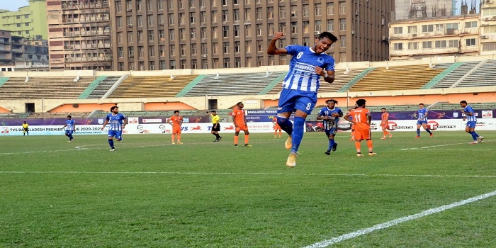 ম্যাচের মাত্র ৬ মিনিটেই লিড নেয় শেখ রাসেল। হাবিবুর রহমান নোলকের উড়ন্ত থ্রোয়ে বক্সে জটলার মধ্যে পড়ে বল। সেই বল হেডে গোলে পরিণত করেন নাইজেরিয়ান মিডফিল্ডার ওবি মোনেকে। ২৮ মিনিটে দ্বিতীয় গোল রাসেলের। ওবি মোনেকের বাড়ানো বল ধরে গোল করেন ব্রাজিলিয়ান ফরোয়ার্ড লোপেজ রদ্রিগুয়েজ। মিনিট আটেক পর আবার লিড। বাঁ প্রান্ত দিয়ে মোহাম্মদ খালেকুজ্জামানের ক্রসে বক্সের মধ্য থেকে ডান পায়ের ভলিতে প্রথম গোল করেন মিডফিল্ডার মোহাম্মদ আবদুল্লাহ পারভেজ। তিন গোলের ব্যবধানে এগিয়ে থেকে শেখ রাসেল বিরতিতে যায়। দ্বিতীয়ার্ধে গোল শোধের চেষ্টা করলেও ব্যর্থ হন পুলিশের ফুটবলাররা। উল্টো আরও দু’গোল হজম করে বসে তারা। ৬৯ মিনিটে আব্দুল্লাহর জোরালো শট পুলিশের গোলরক্ষক সাইফুল ইসলাম খানের হাতে লেগে জালে জড়িয়ে যায় বল। ৮৪ মিনিটে লোপেজের মাইনাসে তাজিকিস্তানের ডিফেন্ডার সিওভোস অ্যাশরোরেভ পুলিশের কফিনে শেষ পেরেকটি ঠুকে দেন। শেষে ৫-০ গোলের বড় জয় নিয়েই মাঠ ছাড়ে শেখ রাসেল।