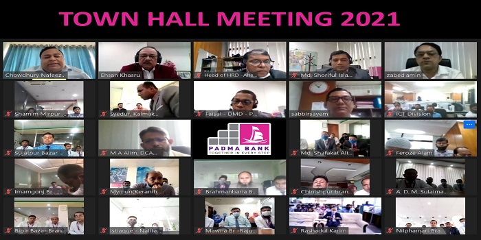 জাতির পিতা বঙ্গবন্ধু শেখ মুজিবুর রহমানের জন্মশতবার্ষিকী ও স্বাধীনতার সুবর্ণজয়ন্তী উপলক্ষ্যে নানান কর্মসূচী ঘোষণার মধ্য দিয়ে চতুর্থ প্রজন্মের পদ্মা ব্যাংক লিমিটেডের টাউন হল মিটিং অনুষ্ঠিত হয় । চলতি বছরের বার্ষিক ব্যবসায়িক কার্যক্রম এবং বর্তমান অর্থনৈতিক প্রেক্ষাপটে ভবিষ্যত কৌশলগত কর্মপন্থা প্রণয়নসহ সার্বিক প্রবৃদ্ধির বিষয় নিয়ে আলোচনা হয় ।