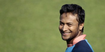 FILE- In this Jan. 25, 2014 file photo, Bangladeshi cricket player Shakib Al Hasan smiles during a practice session in Dhaka, Bangladesh. Hasan goes into the World Cup as the world's top ODI allrounder and the man best capable of winning matches for his team.(AP Photo/A.M. Ahad, file)