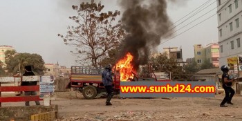 বি.বাড়িয়ায় পুলিশ ভ্যানে আগুন, সাংবাদিককে মারধর