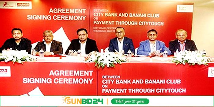 সিটি ব্যাংক ও বনানী ক্লাব লিমিটেডের মধ্যে একটি চুক্তি স্বাক্ষর হয়েছে। সিটি ব্যাংকের প্রধান কার্যালয়ে চুক্তি স্বাক্ষর অনুষ্ঠানের আয়োজন করা হয়।