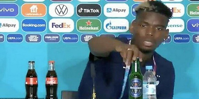 এবার সেই রকমই কাজ করলেন ফ্রান্সের পল পগবা। তার সামনে অবশ্য ছিল এবার বিয়ার। জার্মানির সাথে জেতার পর প্রেস কনফারেন্সে যাওয়া পগবা হেইনকেনের বিয়ার টেবিল থেকে এক পাশে সরিয়ে রাখেন। বিয়ার প্রস্তুতকারক প্রতিষ্ঠান হেইনেকেন এবার ইউরোর অন্যতম স্পনসর।
