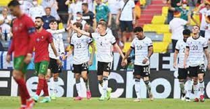 দুই জায়ান্টের ছয় গোলের ম্যাচে বর্তমান চ্যাম্পিয়নদের হারিয়ে চলতি ইউরো কাপে নিজেদের প্রথম জয় তুলে নিয়েছে জার্মানি। নিজেদের ইউরোর ইতিহাসে প্রথমবারের মতো হালি তথা চার গোল হজম করে ম্যাচটি ৪-২ গোলে হেরেছে বর্তমান চ্যাম্পিয়ন পর্তুগাল।