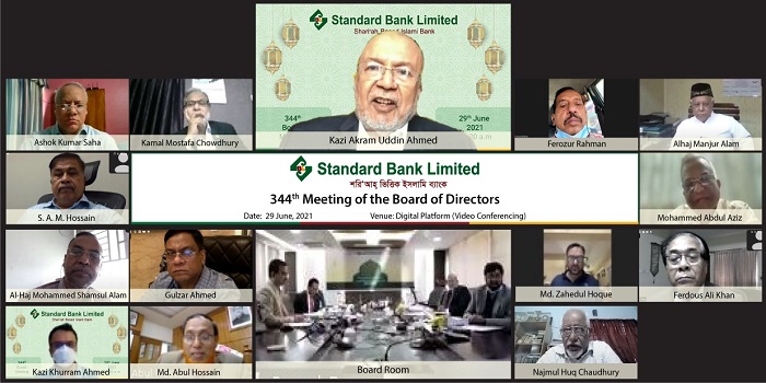 স্ট্যান্ডার্ড ব্যাংক লিমিটেড এর পরিচালনা পর্ষদের ৩৪৪তম সভা, মঙলবার (২৯ জুন) অনুষ্ঠিত হয়ছে। ডিজিটাল প্লাটফর্মে অনুষ্ঠিত উক্ত সভায় সভাপতিত্ব করেন ব্যাংকের পরিচালনা পর্ষদের সম্মানিত চেয়ারম্যান জনাব কাজী আকরাম উদ্দিন আহ্মদ।