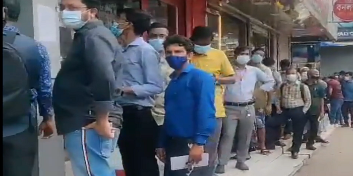 সরেজমিনে দেখা গেছে, মিরপুর-১ নম্বরের দারুস সালামের ২ নম্বর রোডের উত্তরা ব্যাংকের সামনে কয়েক শতাধিক মানুষের লাইন। গ্রাহকের দীর্ঘ সারি ফুটপাথ পেরিয়ে পাকা সড়কে গিয়ে ঠেকেছে। সবাই দাঁড়িয়ে আছে একজন আরেকজনের গা ঘেঁষে।