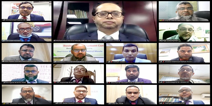 ইসলামী ব্যাংক বাংলাদেশ লিমিটেড-এর বগুড়া জোনের ভার্চুয়্যাল ব্যবসায় উন্নয়ন সম্মেলন বৃহস্পতিবার (১৫ জুলাই) অনুষ্ঠিত হয়েছে। ব্যাংকের ম্যানেজিং ডাইরেক্টর ও সিইও মুহাম্মদ মুনিরুল মওলা সম্মেলনে প্রধান অতিথি হিসেবে বক্তব্য দেন। বিশেষ অতিথি হিসেবে বক্তব্য দেন অ্যাডিশনাল ম্যানেজিং ডাইরেক্টর মুহাম্মদ কায়সার আলী।