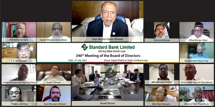 পুঁজিবাজারে তালিকাভুক্ত ব্যাংক খাতের প্রতিষ্ঠান স্ট্যান্ডার্ড ব্যাংক লিমিটেড এর পরিচালনা পর্ষদের ৩৪৬তম সভা, মঙ্গলবার (২৭ জুলাই) অনুষ্ঠিত হয়েছে। ডিজিটাল প্লাটফর্মে অনুষ্ঠিত উক্ত সভায় সভাপতিত্ব করেন ব্যাংকের পরিচালনা পর্ষদের সম্মানিত চেয়ারম্যান জনাব কাজী আকরাম উদ্দিন আহমদ।