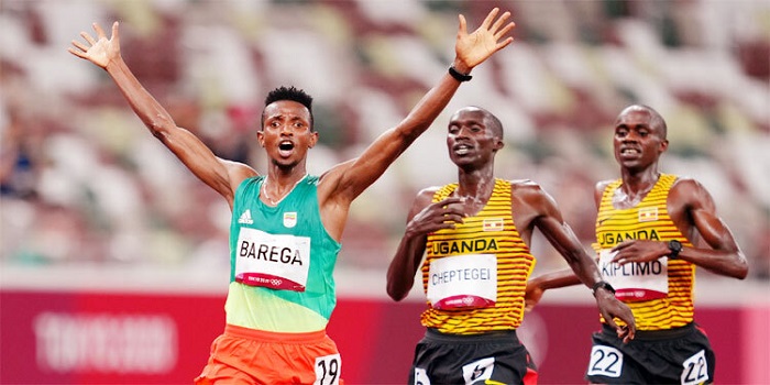 এই ইভেন্টে ফেবারিট ছিলেন গতবছরের অক্টোবরে বিশ্ব রেকর্ড গড়া জশুয়াই। কিন্তু তাকে ০.৪১ সেকেন্ডের ব্যবধানে হারিয়ে দিয়েছেন বারেগা। নিজের দেশকে এনে দিয়েছেন স্বর্ণ।
