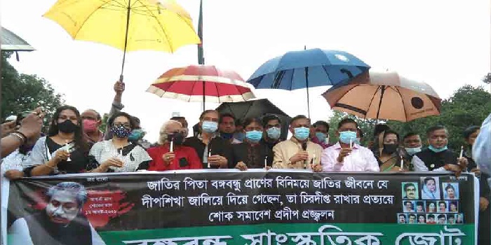 বঙ্গবন্ধু সাংস্কৃতিক জোটের কার্যকরী সভাপতি বিশিষ্ট সংগীতশিল্পী রফিকুল আলমের সভাপতিত্বে এ প্রদীপ প্রজ্জ্বলন অনুষ্ঠানে অন্যান্যের মধ্যে স্বাধীনবাংলা বেতারকেন্দ্রের শব্দসৈনিক মনোরঞ্জন ঘোষাল, ঢাকা মহানগর দক্ষিণ আওয়ামী লীগের সাবেক সাধারণ সম্পাদক শাহে আলম মুরাদ, আওয়ামী লীগ নেতা এডভোকেট বলরাম পোদ্দার, বঙ্গবন্ধু সাংস্কৃতিক জোটের সাধারণ সম্পাদক অরুণ সরকার রানা, চলচ্চিত্র অভিনেত্রী অরুণা বিশ্বাস, নাট্য অভিনেত্রী তারিন জাহান প্রমুখ অংশ নেন।