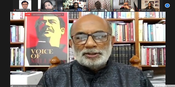 বঙ্গবন্ধু সাংস্কৃতিক জোটের কার্যকরী সভাপতি রফিকুল আলমের সভাপতিত্বে ও সাংগঠনিক সম্পাদক সুজন হালদারের সঞ্চালনায় ভার্চুয়াল আলোচনায় প্রধান বক্তা হিসেবে অংশগ্রহণ করেন তথ্য ও সম্প্রচার প্রতিমন্ত্রী ডা. মোঃ মুরাদ হাসান এমপি। এছাড়া আরো অংশগ্রহণ করেন বাংলাদেশ ছাত্রলীগের সাবেক সহসভাপতি বলরাম পোদ্দার, বঙ্গবন্ধু সাংস্কৃতিক জোটের সাধারণ সম্পাদক অরুন সরকার রানা, সহসভাপতি অরুণা বিশ্বাস, যুগ্ম সম্পাদক তারিন জাহান, শিল্পী দিনাত জাহান মুন্নী প্রমুখ।