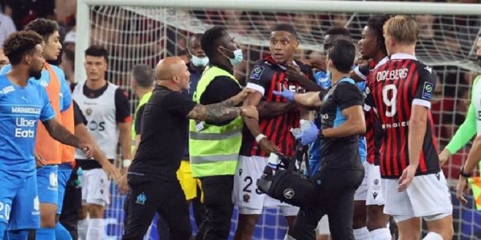 ম্যাচের প্রথমার্ধ ছিল গোলশূন্য। দ্বিতীয়ার্ধের খেলাও শুরু হয় নির্বিঘ্নেই। ৪৯ মিনিটের মাথায় ডলবার্গের গোলে ১-০ ব্যাবধানে এগিয়ে যায় স্বাগতিক দল নিসে। তবে ম্যাচের ৭৪ মিনিটের মাথায় মার্সেইয়ের একটি কর্ণারের সময় শুরু হয় গণ্ডগোল।