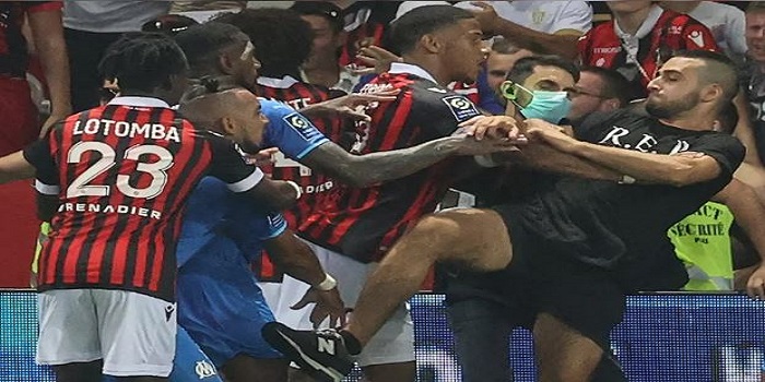 ফরাসী লিগে অবশ্য এখনও অভিষেক হয়নি মেসির। এমনকি চলতি মৌসুমে এখনও খেলতে নামেননি নেইমারও। তার আগেই এমন অপ্রীতিকর ঘটনা ঘটে গেলো। খেলাটি হচ্ছিল নিসে বনাম অলিম্পিক মার্সেইয়ের মধ্যে। নিসের মাঠ আলিয়াঞ্জ রিভেইরা স্টেডিয়ামে অনুষ্ঠিত হচ্ছিল ম্যাচটি। দ্বিতীয়ার্ধেই ঘটে এই অপ্রীতিকর ঘটনা।