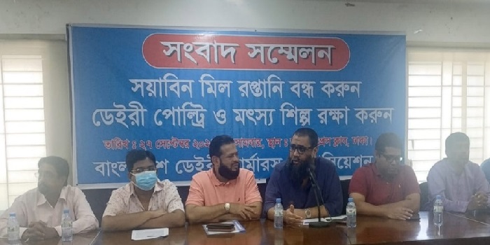সোমবার (২৭ সেপ্টেম্বর) সকালে জাতীয় প্রেস ক্লাবের মাওলানা মোহাম্মদ আকরাম খাঁ হলে ‘সয়াবিন মিল রফতানি বন্ধ করুন, ডেইরি পোল্ট্রি ও মৎস্য শিল্প রক্ষা করুন’ শীর্ষক এক সংবাদ সম্মেলনে সংগঠনটির সভাপতি মোহাম্মদ ইমরান হোসেন এসব কথা বলেন।
