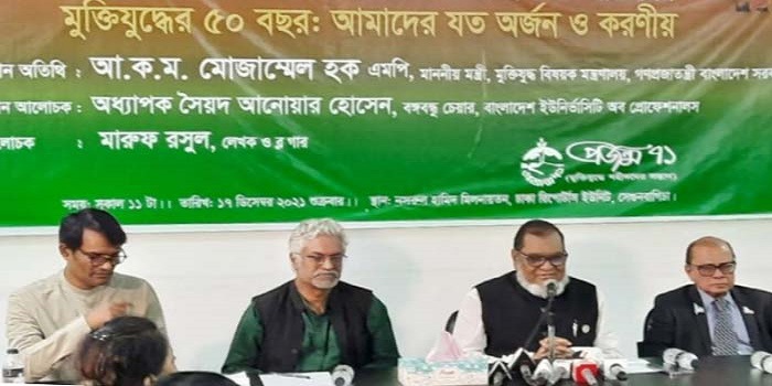 শুক্রবার (১৭ ডিসেম্বর) ঢাকা রিপোর্টার্স ইউনিটি মিলনায়তনে প্রজন্ম '৭১ আয়োজিত 'মুক্তিযুদ্ধের ৫০ বছর: আমাদের যত অর্জন ও করণীয়' শীর্ষক আলোচনা সভায় তিনি এ কথা বলেন।
