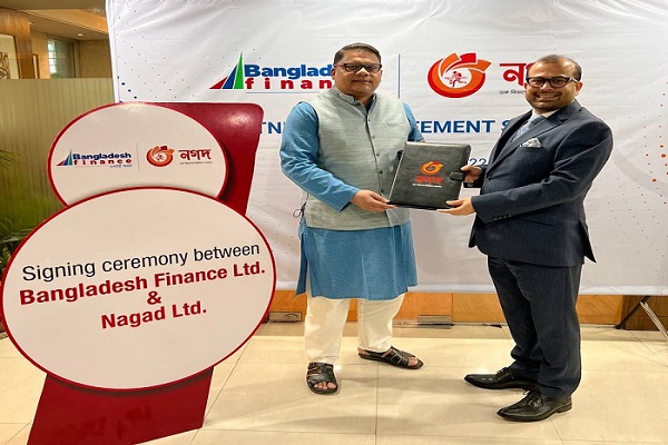 সোমবার (২৪ জানুয়ারি) দুপুরে ঢাকার দিলকুশায় বাংলাদেশ ফাইন্যান্স লিমিটেডের প্রধান কার্যালয়ে আয়োজিত এক অনুষ্ঠানে এ সংক্রান্ত একটি চুক্তি স্বাক্ষর হয়। বাংলাদেশ ফাইন্যান্স লিমিটেডের ব্যবস্থাপনা পরিচালক ও প্রধান নির্বাহী কর্মকর্তা মোঃ কায়সার হামিদ এবং ‘নগদ’-এর প্রধান নির্বাহী কর্মকর্তা রাহেল আহমেদ নিজ নিজ প্রতিষ্ঠানের পক্ষ থেকে চুক্তিতে স্বাক্ষর করেন।