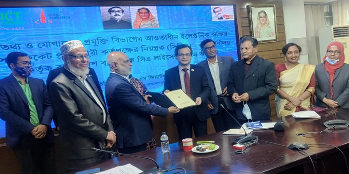 তথ্য ও যোগাযোগ প্রযুক্তি বিভাগের ইলেকট্রনিক স্বাক্ষর সার্টিফিকেট প্রদানকারী কর্তৃপক্ষ (সিসিএ) দেশের ব্যাংক সমূহের নিয়ন্ত্রণকারী প্রতিষ্ঠান বাংলাদেশ ব্যাংককে সিএ (সার্টিফাইয়িং অথরিটি) লাইসেন্স দিয়েছে।