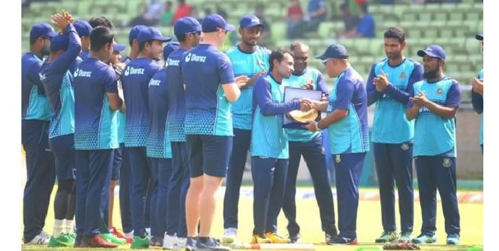 ম্যাচের শুরুতে শততম টি-টোয়েন্টি খেলা উপলক্ষে মুশফিককে সম্মাননা স্মারক দেওয়া হয়েছে। জাতীয় দলের টিম ডিরেক্টর খালেদ মাহমুদ সুজনের হাত থেকে এই স্মারক সংগ্রহ করেন মুশফিক।