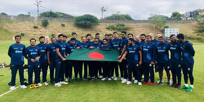 ২৬ মার্চ স্বাধীনতা দিবস উপলক্ষে দক্ষিণ আফ্রিকার চ্যাটসওয়ার্থ ক্রিকেট ক্লাবে আজকের অনুশীলন শুরুর আগে দলের খেলোয়াড়রা লাল-সবুজের পতাকা হাতে নিয়ে ছবি তুলেছেন। জাতীয় সংগীত গাওয়ার সময় ক্রিকেটার, টিম ম্যানেজমেন্ট, টিম বয়সহ বিদেশি কোচিং স্টাফের সদস্যরা উপস্থিত ছিলেন।