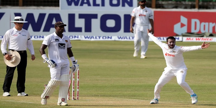 লঙ্কানদের হয়ে ব্যাটিংয়ে হাল ধরেন অ্যাঞ্জেলা ম্যাথুস, কুশল মেন্ডিস ও দিনেশ চান্দিমাল। ২৩ রানে প্রথম এবং ৬৬ রানে দ্বিতীয় উইকেট শিকার করায় ভালো কিছুর ইঙ্গিত দিয়েছিলেন নাঈম হাসান। কিন্তু এরপর কুশল মেন্ডিস ও অ্যাঞ্জেলা ম্যাথুস জুটিতে ঘুরে দাঁড়ায় শ্রীলঙ্কা। তাইজুল ইসলাম এই জুটি ভাঙার একটু পর শিকারের সন্ধান পান সাকিব আল হাসানও।