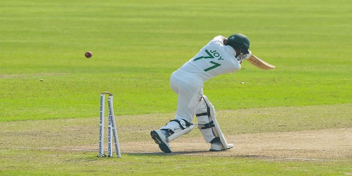 কেমার রোচের করা ম্যাচের প্রথম বল থেকে সিঙ্গেল নিয়ে জয়কে স্ট্রাইক দিয়েছিলেন তামিম। দ্বিতীয় বলেই খোঁচা দিয়ে স্লিপে ক্যাচ হয়ে ফিরেছেন জয়। রোচের পরের ওভারের প্রথম বলেই শান্তর ব্যাট-প্যাডের ফাঁক গলে বল গিয়ে আঘাত হানে স্টাম্পে।