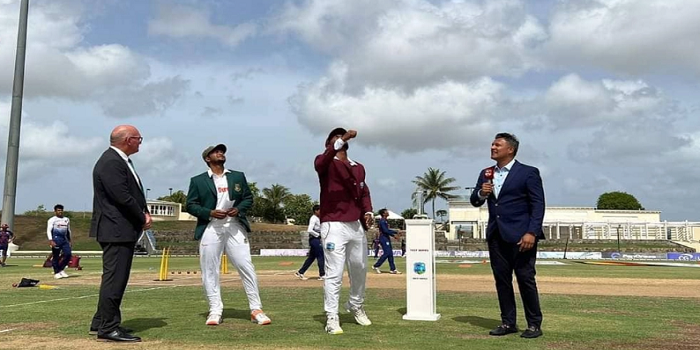 সেন্ট লুসিয়ার ড্যারেন স্যামি ন্যাশনাল ক্রিকেট স্টেডিয়ামে সিরিজের দ্বিতীয় তথা শেষ টেস্টে টস হেরে ব্যাটিংয়ে নামতে যাচ্ছে বাংলাদেশ। তৃতীয় মেয়াদে অধিনায়কত্ব পাওয়ার পর এই নিয়ে প্রথম দুই টেস্টেই টস হারলেন বাংলাদেশ অধিনায়ক সাকিব আল হাসান।