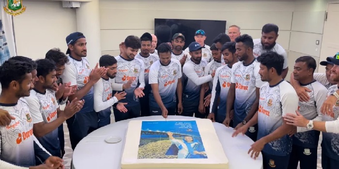 তবে এই সিরিজের দ্বিতীয় টেস্ট যখন চলছে, তখনই উদ্বোধন হলো দীর্ঘ প্রতীক্ষিত সেতুটি। এই মাহেন্দ্রক্ষণে দেশে না নেই সাকিব আল হাসানরা। তাই বলে সেতু উদ্বোধনের আনন্দ থেকে নিজেদের বঞ্চিত রাখেননি তারা। বিশাল এক কেক কেটে বাংলাদেশ দল উদযাপন করেছে এই মুহূর্ত। বিসিবির অফিসিয়াল ফেসবুক পেজে প্রকাশিত হয় ছবিটি।