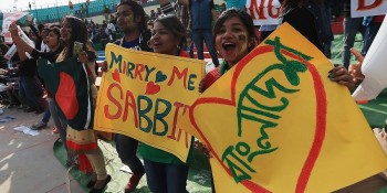 দলীয় ১৮ রানে ওপেনার সৌম্য সরকার সাজঘরে ফিরে যান। তখনই ব্যাটিংয়ে আসেন সাব্বির। তিনি ব্যাটিংয়ে নামার অল্প কিছুক্ষণের মধ্যে ধর্মশালার গ্যালারি থেকে এক নারী প্ল্যাকার্ডে লিখে বিয়ের প্রস্তাব দেন সাব্বিরকে। সেখানে লেখা ছিল ‘ম্যারি মি সাব্বির’।