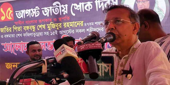 সোমবার (১৫ আগস্ট) ব্রাহ্মণবাড়িয়ার আখাউড়ায় আওয়ামী লীগ আয়োজিত জাতীয় শোক দিবসের অনুষ্ঠানে বিএনপি সরকারের সমালোচনা করে তিনি বলেন, ১৫ আগস্ট ভুয়া জন্মদিন পালন না করে বঙ্গবন্ধুর খুনিদের ধরার বিষয়ে সহযোগিতা করলে কাজটা এত কঠিন হতো না।