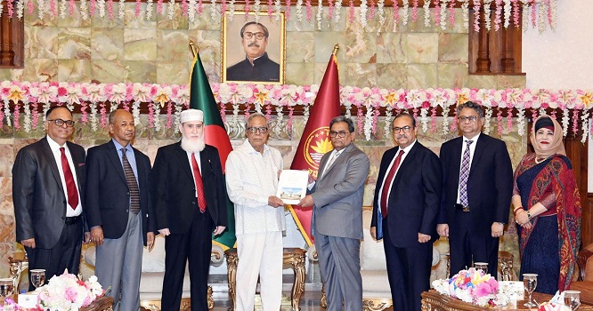 এ সময় রাষ্ট্রপ্রধানের কাছে ‘সুপ্রিম কোর্টের বার্ষিক প্রতিবেদন ২০২১’ তুলে দেন প্রধান বিচারপতি।