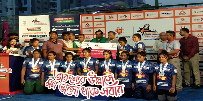 এ দিন সমাপ্ত আন্ত:বিশ্ববিদ্যালয় কাবাডি প্রতিযোগিতায় ছাত্র বিভাগে চ্যাম্পিয়ন গণবিশ্ববিদ্যালয় ও রানার আপ ড্যাফোডিল ইউনিভার্সিটি এবং ছাত্রী বিভাগে চ্যাম্পিয়ন ড্যাফোডিল ইউনিভার্সিটি ও রানার আপ গণবিশ্ববিদ্যালয় দলের হাতে পুরস্কার তুলে দেন অতিথিবৃন্দ।