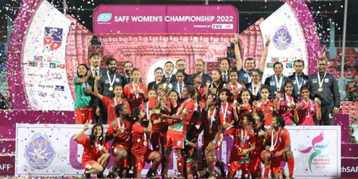 বাংলাদেশ নারী ফুটবল দলের সাফ চ্যাম্পিয়নশিপ জেতার আনন্দে মাতোয়ারা সারা দেশ। এ আনন্দে ভিন্নভাবে অংশ নিচ্ছে বাংলাদেশ ক্রিকেট বোর্ড (বিসিবি)। তাদের পক্ষ থেকে শুভেচ্ছা ও অভিনন্দনের পাশাপাশি আর্থিক পুরস্কারের ঘোষণা দেওয়া হয়েছে।