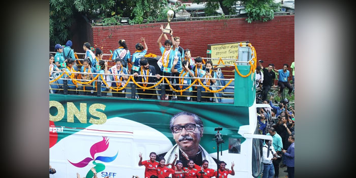 বিমানবন্দর থেকে নারী ফুটবলারদের নিয়ে এই ছাদখোলা বাস যাবে মতিঝিলের বাফুফে ভবনে। আগের দিন এই বাসযাত্রার রোডম্যাপ জানিয়ে দিয়েছিল বাফুফে।