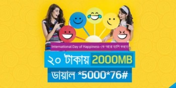 ২০ মার্চ ইন্টারন্যাশনাল হ্যাপিনেস ডে। এ উপলক্ষে প্রথমবারের মত গ্রামীণফোন নিয়ে এলো 2GB 3G ইন্টারনেট মাত্র ২০ টাকায়! যেটা সকল গ্রামীণফোন সিমের জন্য। তাহলে আর দেরি কিসের? এক্ষুণি লুফে নিন এই চমৎকার অফারটি। নাহলে পরে পস্তাতে হবে। অফারটি পেতে ডায়াল *5000*76# যার মেয়াদ ৭ দিন।