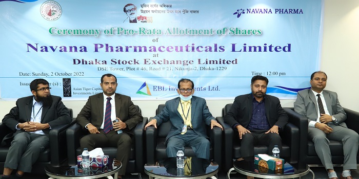 স্টক এক্সচেঞ্জ ইলেক্ট্রনিক সাবস্ক্রিপশন সিস্টেম (ইএসএস) এর মাধ্যমে সাধারণ বিনিয়োগকারীদের মধ্যে প্রো-রাটার (Pro-rata) ভিত্তিতে নাভানা ফার্মাসিউটিক্যালস লিঃ এর শেয়ার বরাদ্দ দেওয়া হয়েছে। রোববার (০২ অক্টোবর) ডিএসই টাওয়ারে (নিকুঞ্জ-২) অবস্থিত লিষ্টিং হলরুমে এ বরাদ্দ অনুষ্ঠিত হয়।