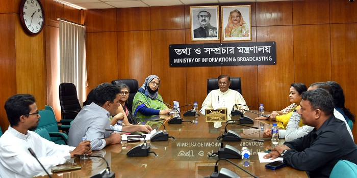 সোমবার (১৭ অক্টোবর) দুপুরে সচিবালয়ে টেলিভিশন গণমাধ্যমের শিল্পী, পরিচালক, প্রযোজক, কুশলীবৃন্দের সাথে বৈঠক শেষে সাংবাদিকদের প্রশ্নের জবাবে তিনি এ কথা বলেন। মন্ত্রণালয়ের অতিরিক্ত সচিব (সম্প্রচার) খাদিজা বেগম এ সময় উপস্থিত ছিলেন।
