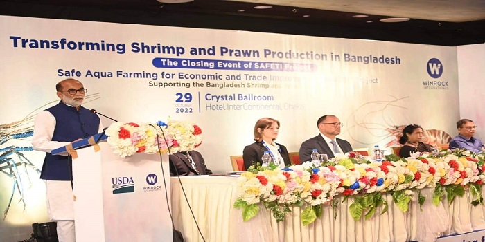 শনিবার (২৯ অক্টোবর) রাজধানীর একটি হোটেলে বাংলাদেশের চিংড়ি খাতের রুপান্তরে যুক্তরাষ্ট্রের কৃষি বিভাগের সহায়তায় উইনরক ইন্টারন্যাশনাল বাংলাদেশ কর্তৃক বাস্তবায়নকৃত সেইফ অ্যাকুয়া ফার্মিং ফর ইকনোমিক অ্যান্ড ট্রেড ইমপ্রুভমেন্ট (সেফটি) প্রকল্পের সমাপনী অনুষ্ঠানে প্রধান অতিথির বক্তব্যে মন্ত্রী এ কথা জানান।
