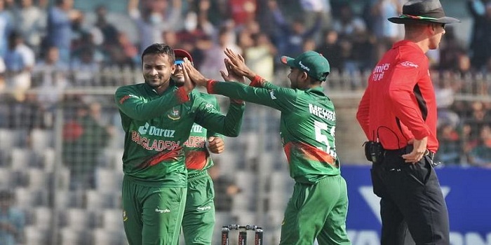 ব্যক্তিগত ৭ রানে মেহেদী হাসান মিরাজের শিকার হন শিখর। এরপর বোলিংয়ে এসে নিজের প্রথম ওভারে রোহিত (২৭) এবং বিরাট কোহলিকে (৯) সাজঘরে ফেরান সাকিব আল হাসান।