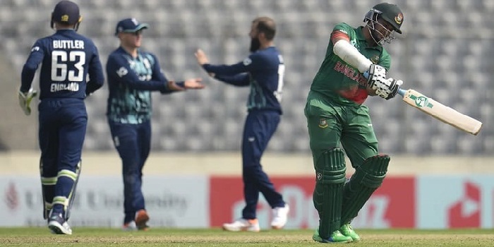মিরপুরের শের-ই-বাংলা জাতীয় ক্রিকেট স্টেডিয়ামে ইংল্যান্ডের বিপক্ষে প্রথম ওয়ানডেতে টস জিতে ব্যাটিংয়ের সিদ্ধান্ত নিয়েছিলো টাইগার অধিনায়ক তামিম ইকবাল। ব্যাটিংইয়ে নেমে বাংলাদেশের পরীক্ষাটা ছিলো জোফরা আর্চার বা মার্ক উডদের পেস-বাউন্সের বিপক্ষে। সেই পরীক্ষায় অধিনায়ক তামিম যেভাবে শুরু করলেন তাতে বেশ ভরসা পেতেই পারতো বাংলাদেশ। ইংল্যান্ডকে তিনশ বা তার কাছাকাছি রানের লক্ষ্য দেওয়াই যেন অনায়াসে। তবে সে আশায় গুড়েবালি। এক শান্ত ছাড়া ইংলিশ বোলারদের স্বাচ্ছন্দ্যে খেলতে পারলেন কেউই।
