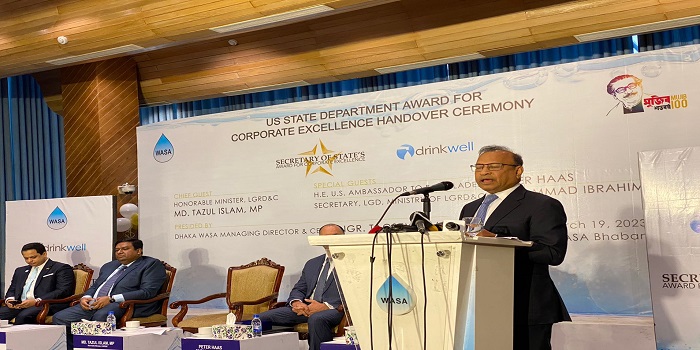 রোববার (১৯ মার্চ) ঢাকা ওয়াসার পার্টনার ড্রিংকওয়েল এটিএম প্রোগ্রামের যুক্তরাষ্ট্রের পররাষ্ট্র মন্ত্রণালয়ের কর্পোরেট এক্সিলেন্স পুরস্কার ২০২২ প্রাপ্তি ও হস্তান্তর উপলক্ষে ওয়াসা ভবনে আয়োজিত এক অনুষ্ঠানে প্রধান অতিথির বক্তব্যে তিনি এ কথা বলেন।