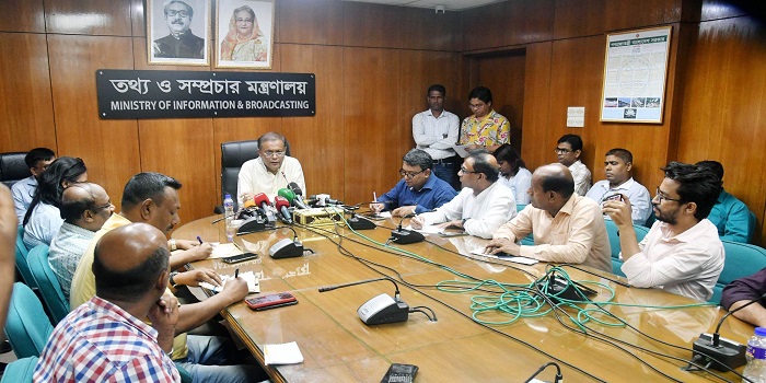 তথ্যমন্ত্রী এ সময় বলেন, ‘আরেকটি বিষয় হচ্ছে দেখুন, বিএনপি হচ্ছে একটি সন্ত্রাসী রাজনৈতিক দল। কানাডার আদালত কর্তৃক রায়প্রাপ্ত ভ্যালিডেটেড সন্ত্রাসী অর্থাৎ সিলমারা সন্ত্রাসী দল, যারা মানুষ পোড়ায়, গাড়ি-ঘোড়া পোড়ায়, পুলিশের ওপর হামলা চালায়, মানুষের ওপর হামলা চালায়, যারা প্রধানমন্ত্রী জননেত্রী শেখ হাসিনাকে হত্যা করার উদ্দেশ্যে ২১ আগস্টে গ্রেনেড হামলা চালায়। তাদের হামলায় বাংলাদেশ আওয়ামী লীগের এস এম কিবরিয়া, আহসান উল্লাহ মাস্টার, খুলনার মনজুর ইমামসহ অনেকেই নিহত হয়েছে। তাদের হামলায় আমাদের শেখ হেলাল এমপির জনসভায় অনেক মানুষ নিহত ও আহত হয়েছে, আদালতের বিচারক নিহত হয়েছে। এবং বিএনপি যাদের পৃষ্ঠপোষকতা করে আর যারা বিএনপিকে পৃষ্ঠপোষকতা করে তাদের হামলায় সারাদেশে ৫শ’ জায়গায় একযোগে বোমা ফুটেছে। বেগম খালেদা জিয়ার দ্বিতীয় পুত্রের অস্বাভাবিক মৃত্যুর পর তার প্রতি সহানুভূতি জানাতে দেশের প্রধানমন্ত্রী গিয়ে বেগম জিয়ার দরজায় আধাঘন্টা দাঁড়িয়ে থাকার পরও যারা দরজা খোলে নাই, যারা অগ্নিসন্ত্রাস চালায়, মানুষের ওপর হামলা চালায় তাদের সাথে আলোচনা করে কি হবে, সেটি হচ্ছে বড় প্রশ্ন।’