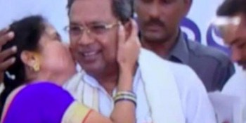 কর্নাটকের মুখ্যমন্ত্রী সিদ্দারামাইয়াকে প্রকাশ্যে চুম্বন করলেন পঞ্চায়েতের এক সদস্যা। রবিবার এই ঘটনা ঘটে। মুখ্যমন্ত্রী বেঙ্গালুরুতে কুরুবা সম্প্রদায় আয়োজিত একটি অনুষ্ঠানে গিয়েছিলেন।