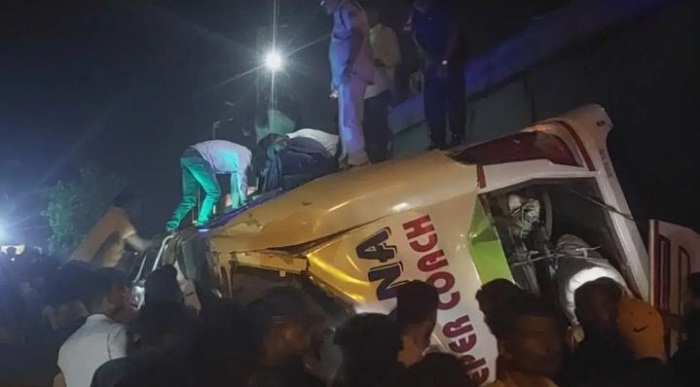 ৫০ যাত্রী নিয়ে ফ্লাইওভার থেকে পড়ে গেল বাস, নিহত ৫